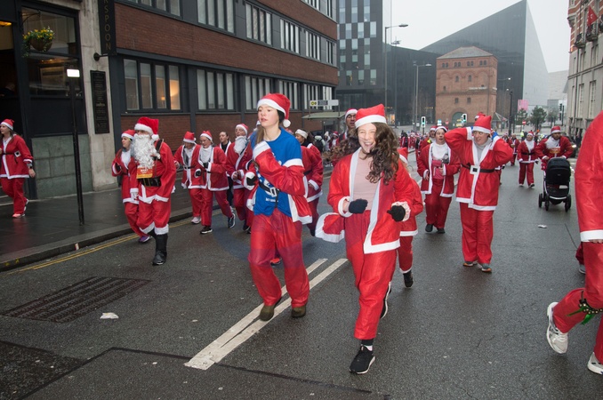 the liverpool Santa Dash, the biggest and longest established Santa Run in the UK., Credit:celebrityphotos uk / Avalon