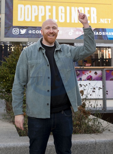 Ray Bradshaw has launched his worldwide search forhis doppelganger at Westfield, White City in London. Rayunveiled his giant billboard to search for people who look likehim after constantly being compared to other bald ginger men., Credit:celebrityphotos uk / Avalon