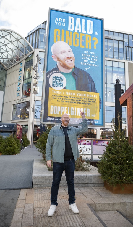 Ray Bradshaw has launched his worldwide search forhis doppelganger at Westfield, White City in London. Rayunveiled his giant billboard to search for people who look likehim after constantly being compared to other bald ginger men., Credit:celebrityphotos uk / Avalon