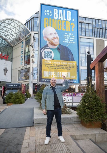 Ray Bradshaw has launched his worldwide search forhis doppelganger at Westfield, White City in London. Rayunveiled his giant billboard to search for people who look likehim after constantly being compared to other bald ginger men., Credit:celebrityphotos uk / Avalon