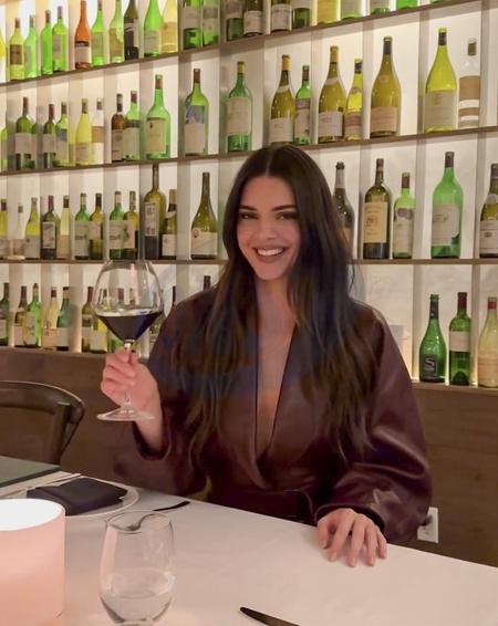 Screenshot of Kendall Jenner, latest post on social media, 3rd December 2023.Quote:"me and my wine again.", Credit:B4859 / Avalon