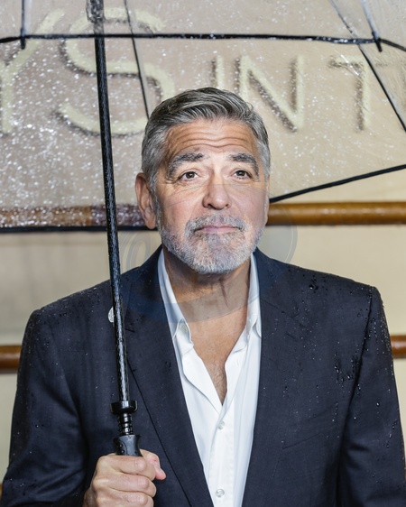 London, UK 03rd Dec 2023. George Clooney, director of the film and Hollywood star, poses with an umbrella in the pouring rain at a UK special screening of 'The Boys in the Boat' at Curzon Mayfair. The film tells a 1930s-set story centered on the University of Washington's rowing team., Credit:Imageplotter / Avalon