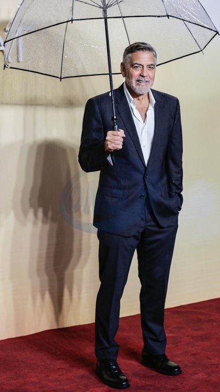 London, UK 03rd Dec 2023. George Clooney, director of the film and Hollywood star, poses with an umbrella in the pouring rain at a UK special screening of 'The Boys in the Boat' at Curzon Mayfair. The film tells a 1930s-set story centered on the University of Washington's rowing team., Credit:Imageplotter / Avalon