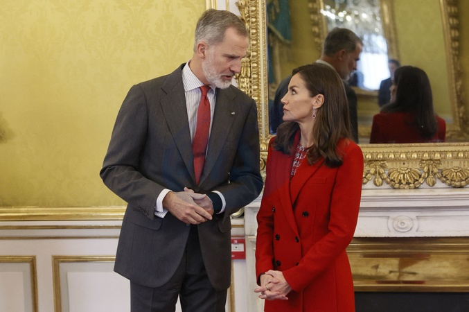Król Felipe Filip VI i hiszpańska królowa Letycja biorą udział w dorocznym posiedzeniu rady dyrektorów Instytutu Cervantesa w Pałacu Królewskim w Madrycie