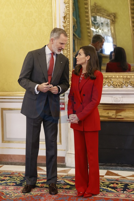 Król Felipe Filip VI i hiszpańska królowa Letycja biorą udział w dorocznym posiedzeniu rady dyrektorów Instytutu Cervantesa w Pałacu Królewskim w Madrycie