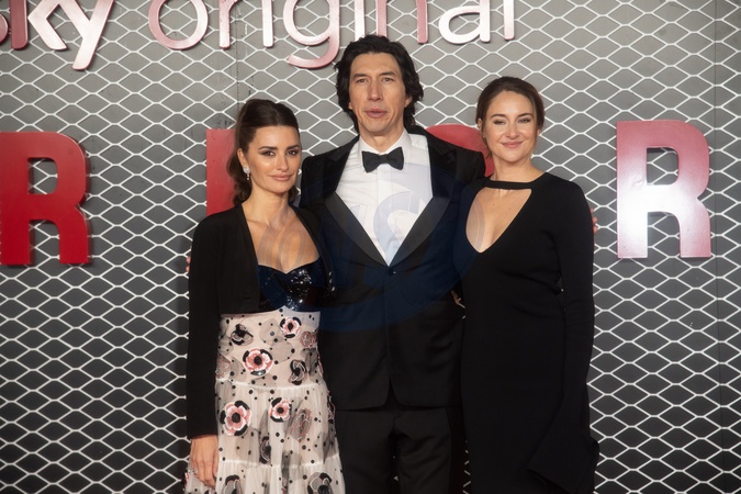 (L-R) - Penelope Cruz, Adam Driver, Shailene Woodley attends the UK Premiere of "Ferrari" at Odeon Luxe, Leicester Square, London, England, UK on Monday 4 December, 2023., Credit:Justin Ng / Avalon