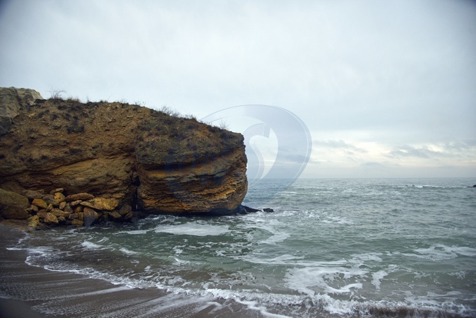 ODESA, UKRAINE - DECEMBER 3, 2023 - A cliff overlooks the Black Sea in winter, Odesa, southern Ukraine., Credit:MARKIIAN LYSEIKO / Avalon