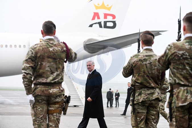 Le roi Philippe et la reine Mathilde de Belgique lors de leur visite officielle en Allemagne, le 5 décembre 2023. © Frédéric Andrieu/Bestimage Her Majesty The King Philippe and the Queen Mathilde take part of the State visit in Federal Republic of Germany for three days. Official Departure Ceremony in Melsbroek airport © F.Andrieu / Agencepeps