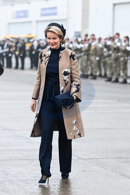 Le roi Philippe et la reine Mathilde de Belgique lors de leur visite officielle en Allemagne, le 5 décembre 2023. © Frédéric Andrieu/Bestimage Her Majesty The King Philippe and the Queen Mathilde take part of the State visit in Federal Republic of Germany for three days. Official Departure Ceremony in Melsbroek airport © F.Andrieu / Agencepeps