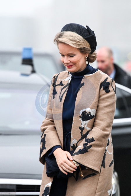 Le roi Philippe et la reine Mathilde de Belgique lors de leur visite officielle en Allemagne, le 5 décembre 2023. © Frédéric Andrieu/Bestimage Her Majesty The King Philippe and the Queen Mathilde take part of the State visit in Federal Republic of Germany for three days. Official Departure Ceremony in Melsbroek airport © F.Andrieu / Agencepeps