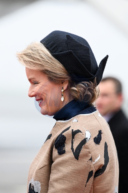 Le roi Philippe et la reine Mathilde de Belgique lors de leur visite officielle en Allemagne, le 5 décembre 2023. © Frédéric Andrieu/Bestimage Her Majesty The King Philippe and the Queen Mathilde take part of the State visit in Federal Republic of Germany for three days. Official Departure Ceremony in Melsbroek airport © F.Andrieu / Agencepeps