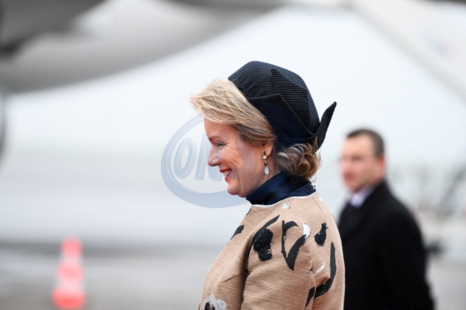 Le roi Philippe et la reine Mathilde de Belgique lors de leur visite officielle en Allemagne, le 5 décembre 2023. © Frédéric Andrieu/Bestimage Her Majesty The King Philippe and the Queen Mathilde take part of the State visit in Federal Republic of Germany for three days. Official Departure Ceremony in Melsbroek airport © F.Andrieu / Agencepeps