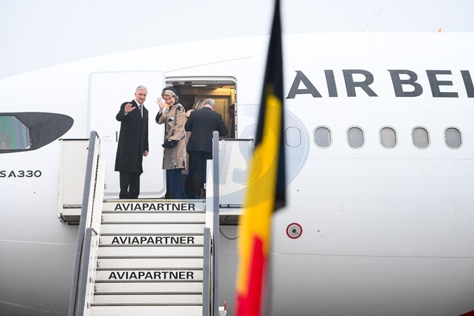 Le roi Philippe et la reine Mathilde de Belgique lors de leur visite officielle en Allemagne, le 5 décembre 2023. © Frédéric Andrieu/Bestimage Her Majesty The King Philippe and the Queen Mathilde take part of the State visit in Federal Republic of Germany for three days. Official Departure Ceremony in Melsbroek airport © F.Andrieu / Agencepeps