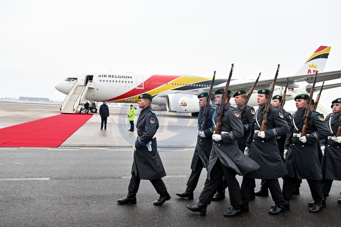 Le roi Philippe et la reine Mathilde de Belgique lors de leur visite officielle en Allemagne, le 5 décembre 2023. © Frédéric Andrieu/Bestimage Her Majesty The King Philippe and the Queen Mathilde take part of the State visit in Federal Republic of Germany for three days. Arrival of TTMM the King and the Queen of the Belgians, the Ministers, the official, business, academic and press delegations at Berlin Brandenburg Airport, Military Section Welcome by State Secretary Dr. Dörte Dinger, Head of the Office of the Federal President, Mr. Volker Timmermann, German Deputy Chief of Protocol and HE Geert Muylle, Ambassador of Belgium in Germany Ceremony on red carpet. © F.Andrieu / Agencepeps