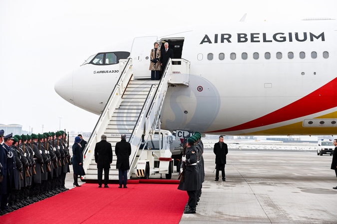 Le roi Philippe et la reine Mathilde de Belgique lors de leur visite officielle en Allemagne, le 5 décembre 2023. © Frédéric Andrieu/Bestimage Her Majesty The King Philippe and the Queen Mathilde take part of the State visit in Federal Republic of Germany for three days. Arrival of TTMM the King and the Queen of the Belgians, the Ministers, the official, business, academic and press delegations at Berlin Brandenburg Airport, Military Section Welcome by State Secretary Dr. Dörte Dinger, Head of the Office of the Federal President, Mr. Volker Timmermann, German Deputy Chief of Protocol and HE Geert Muylle, Ambassador of Belgium in Germany Ceremony on red carpet. © F.Andrieu / Agencepeps