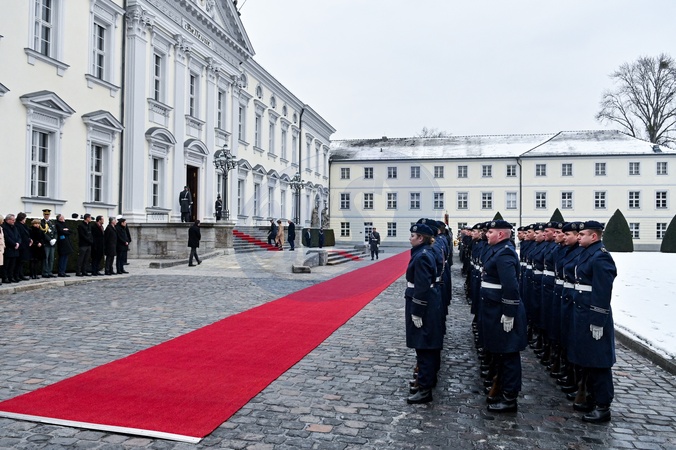 Le roi Philippe et la reine Mathilde de Belgique lors de leur visite officielle en Allemagne, le 5 décembre 2023. © Frédéric Andrieu/Bestimage Her Majesty The King Philippe and the Queen Mathilde take part of the State visit in Federal Republic of Germany for three days. Welcome Ceremony by HE Frank-Walter Steinmeier, President of the Federal Republic of Germany and Mrs. Elke Büdenbender, the First Lady Welcome by President Steinmeier and the First Lady Inspection of the troops by President Steinmeier and HM the King Short encounter with German school children for Their Majesties Presentation of the German and Belgian delegations Signing of the Visitor Book for Their Majesties © F.Andrieu / Agencepeps