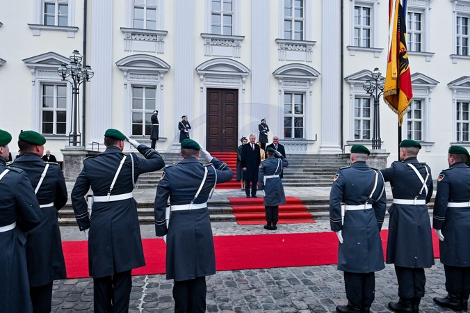 Le roi Philippe et la reine Mathilde de Belgique lors de leur visite officielle en Allemagne, le 5 décembre 2023. © Frédéric Andrieu/Bestimage Her Majesty The King Philippe and the Queen Mathilde take part of the State visit in Federal Republic of Germany for three days. Welcome Ceremony by HE Frank-Walter Steinmeier, President of the Federal Republic of Germany and Mrs. Elke Büdenbender, the First Lady Welcome by President Steinmeier and the First Lady Inspection of the troops by President Steinmeier and HM the King Short encounter with German school children for Their Majesties Presentation of the German and Belgian delegations Signing of the Visitor Book for Their Majesties © F.Andrieu / Agencepeps