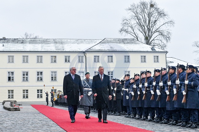 Le roi Philippe et la reine Mathilde de Belgique lors de leur visite officielle en Allemagne, le 5 décembre 2023. © Frédéric Andrieu/Bestimage Her Majesty The King Philippe and the Queen Mathilde take part of the State visit in Federal Republic of Germany for three days. Welcome Ceremony by HE Frank-Walter Steinmeier, President of the Federal Republic of Germany and Mrs. Elke Büdenbender, the First Lady Welcome by President Steinmeier and the First Lady Inspection of the troops by President Steinmeier and HM the King Short encounter with German school children for Their Majesties Presentation of the German and Belgian delegations Signing of the Visitor Book for Their Majesties © F.Andrieu / Agencepeps