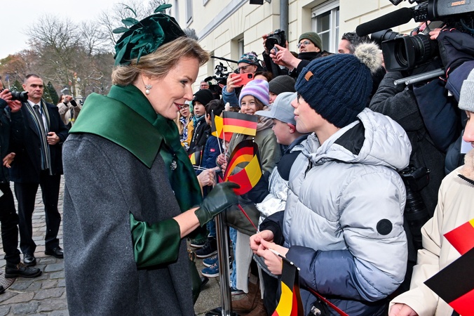 Le roi Philippe et la reine Mathilde de Belgique lors de leur visite officielle en Allemagne, le 5 décembre 2023. © Frédéric Andrieu/Bestimage Her Majesty The King Philippe and the Queen Mathilde take part of the State visit in Federal Republic of Germany for three days. Welcome Ceremony by HE Frank-Walter Steinmeier, President of the Federal Republic of Germany and Mrs. Elke Büdenbender, the First Lady Welcome by President Steinmeier and the First Lady Inspection of the troops by President Steinmeier and HM the King Short encounter with German school children for Their Majesties Presentation of the German and Belgian delegations Signing of the Visitor Book for Their Majesties © F.Andrieu / Agencepeps