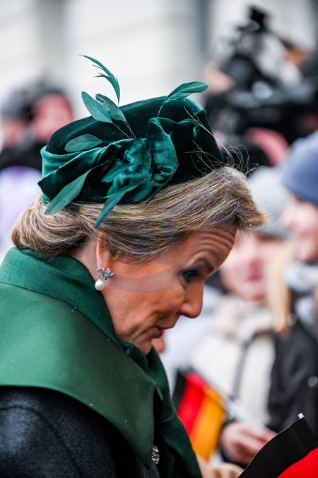 Le roi Philippe et la reine Mathilde de Belgique lors de leur visite officielle en Allemagne, le 5 décembre 2023. © Frédéric Andrieu/Bestimage Her Majesty The King Philippe and the Queen Mathilde take part of the State visit in Federal Republic of Germany for three days. Welcome Ceremony by HE Frank-Walter Steinmeier, President of the Federal Republic of Germany and Mrs. Elke Büdenbender, the First Lady Welcome by President Steinmeier and the First Lady Inspection of the troops by President Steinmeier and HM the King Short encounter with German school children for Their Majesties Presentation of the German and Belgian delegations Signing of the Visitor Book for Their Majesties © F.Andrieu / Agencepeps