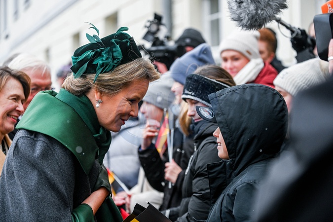 Le roi Philippe et la reine Mathilde de Belgique lors de leur visite officielle en Allemagne, le 5 décembre 2023. © Frédéric Andrieu/Bestimage Her Majesty The King Philippe and the Queen Mathilde take part of the State visit in Federal Republic of Germany for three days. Welcome Ceremony by HE Frank-Walter Steinmeier, President of the Federal Republic of Germany and Mrs. Elke Büdenbender, the First Lady Welcome by President Steinmeier and the First Lady Inspection of the troops by President Steinmeier and HM the King Short encounter with German school children for Their Majesties Presentation of the German and Belgian delegations Signing of the Visitor Book for Their Majesties © F.Andrieu / Agencepeps