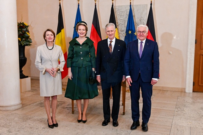Le roi Philippe et la reine Mathilde de Belgique lors de leur visite officielle en Allemagne, le 5 décembre 2023. © Frédéric Andrieu/Bestimage Her Majesty The King Philippe and the Queen Mathilde take part of the State visit in Federal Republic of Germany for three days. Welcome Ceremony by HE Frank-Walter Steinmeier, President of the Federal Republic of Germany and Mrs. Elke Büdenbender, the First Lady Welcome by President Steinmeier and the First Lady Inspection of the troops by President Steinmeier and HM the King Short encounter with German school children for Their Majesties Presentation of the German and Belgian delegations Signing of the Visitor Book for Their Majesties © F.Andrieu / Agencepeps