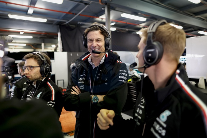 Info - Formule 1 : Toto Wolff, patron de Mercedes, visé par une enquête pour conflit d'intérêts - WOLFF Toto (aut), Team Principal & CEO of Mercedes AMG F1 Team D'AMBROSIO Jerome, Mercedes driver development director SCHUMACHER Mick (ger), Reserve Driver of Mercedes AMG F1 Team lors du Grand Prix Formule 1 Rolex d'Australie 2023 sur le circuit d'Albert Park à Melbourne, Austalie, le 2 avril 2023. © DPPI/Panoramic/Bestimage Formula 1 Rolex Australian Grand Prix 2023, 3rd round of the 2023 Formula One World Championship from March 31 to April 2, 2023 on the Albert Park Circuit, in Melbourne, Australia
