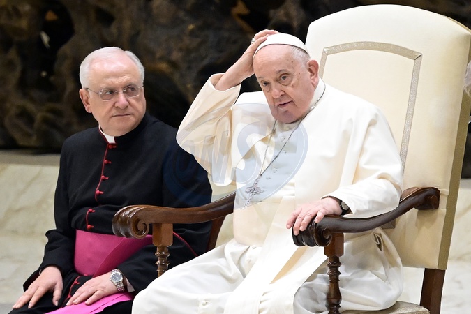 Leonardo Sapienza, Pope Francis attends his weekly general audience in Paul VI Hall, Vatican City, 06 December 2023., Credit:Maria Laura Antonelli / Avalon