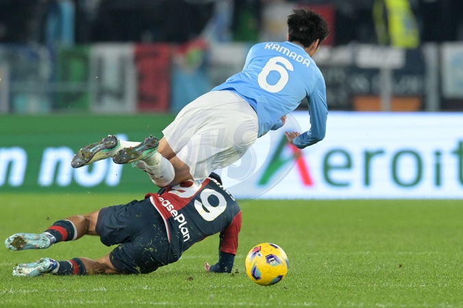 5th December 2023;Stadio Olimpico, Rome, Italy; Coppa Italia Football, Lazio versus Genoa; Pablo Galdames of Genoa CFC and Daichi Kamada of SS Lazio, Credit:AllShotLive / Avalon