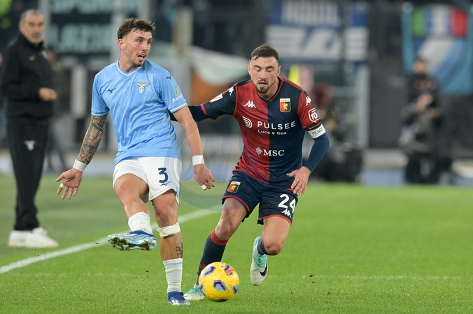 5th December 2023;Stadio Olimpico, Rome, Italy; Coppa Italia Football, Lazio versus Genoa; Luca Pellegrini of SS Lazio and Filip Jagiello of Genoa CFC, Credit:AllShotLive / Avalon