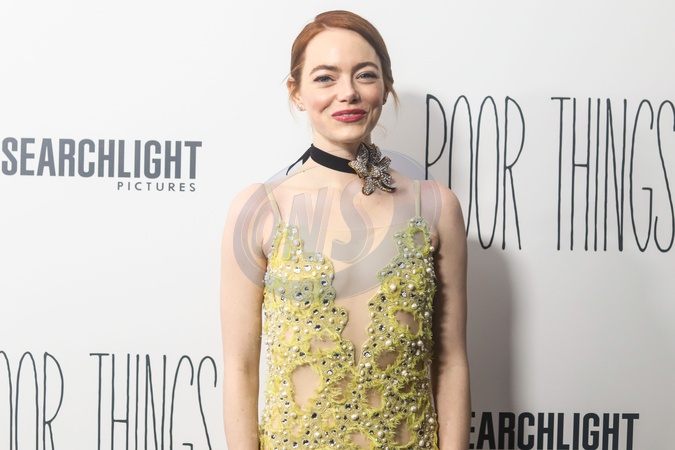 MANHATTAN, NEW YORK CITY, NEW YORK, USA - DECEMBER 06: American actress and producer Emma Stone wearing Louis Vuitton arrives at the New York Premiere Of Searchlight Pictures' 'Poor Things' held at the DGA New York Theater on December 6, 2023 in Manhattan, New York City, New York, United States., Credit:Jordan Hinton / Avalon