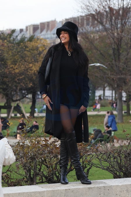 Exclusif - Prix Spécial - No web - Robin Thicke célèbre le 29ème anniversaire de sa compagne April Love Geary à Paris, le 6 décembre 2023. En couple depuis fin 2014, le chanteur américano-canadien de 46 ans n'a eu de cesse de photographier sa chère et tendre dans le jardin des Tuileries, en utilisant son téléphone mais aussi un appareil photo à usage unique. Les deux tourtereaux ont déjeuné au restaurant "Gigi" avant de regagner leur hôtel. © Cyril Moreau / Bestimage Exclusive - Special Price - No web - Robin Thicke celebrates the 29th birthday of his partner April Love Geary in Paris, December 6th, 2023. In a relationship since the end of 2014, the 46-year-old American-Canadian singer has never stopped photographing his beloved in the garden of Tuileries, using your phone but also a single-use camera. The two lovebirds had lunch at the "Gigi” restaurant before returning to their hotel.