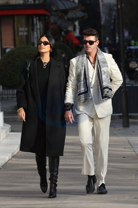Exclusif - Prix Spécial - No web - Robin Thicke célèbre le 29ème anniversaire de sa compagne April Love Geary à Paris, le 6 décembre 2023. En couple depuis fin 2014, le chanteur américano-canadien de 46 ans n'a eu de cesse de photographier sa chère et tendre dans le jardin des Tuileries, en utilisant son téléphone mais aussi un appareil photo à usage unique. Les deux tourtereaux ont déjeuné au restaurant "Gigi" avant de regagner leur hôtel. © Cyril Moreau / Bestimage Exclusive - Special Price - No web - Robin Thicke celebrates the 29th birthday of his partner April Love Geary in Paris, December 6th, 2023. In a relationship since the end of 2014, the 46-year-old American-Canadian singer has never stopped photographing his beloved in the garden of Tuileries, using your phone but also a single-use camera. The two lovebirds had lunch at the "Gigi” restaurant before returning to their hotel.