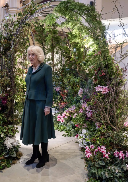 Queen Camilla opens Winter Flowers Week, a celebration of seasonal flowers and foliage, at the Garden Museum, London, United Kingdom, on 07 December 2023.Pic Shows HM The Queen admiring a display called âWinterâs Embrace, Credit:Paul Grover / Avalon