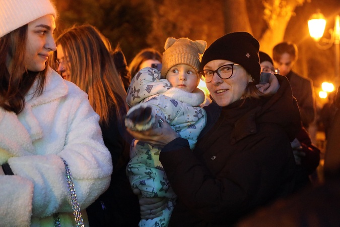 ODESA, UKRAINE - DECEMBER 6, 2023 - An actor dressed as Did Moroz (Ukrainian Santa Claus) and two dialogue police officers attend the lighting of the Christmas tree in Derybasivska Street on Saint Nicholas Day, Odesa, southern Ukraine., Credit:Nina Liashonok / Avalon