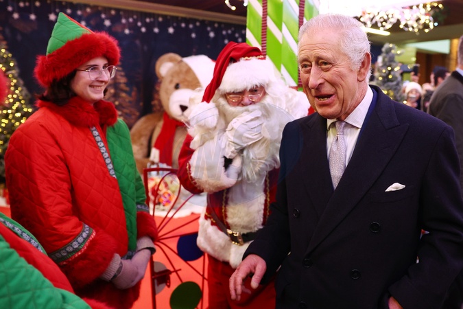 LONDON, ENGLAND - DECEMBER 7: King Charles III visits Ealing Broadway Shopping Centre to tour the Christmas Market, meet local business owners and speak to recipients of The King's Award for Voluntary Service on December 7, 2023 in London, England., Credit:Peter Nicholls / Avalon