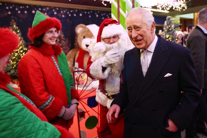 LONDON, ENGLAND - DECEMBER 7: King Charles III visits Ealing Broadway Shopping Centre to tour the Christmas Market, meet local business owners and speak to recipients of The King's Award for Voluntary Service on December 7, 2023 in London, England., Credit:Peter Nicholls / Avalon
