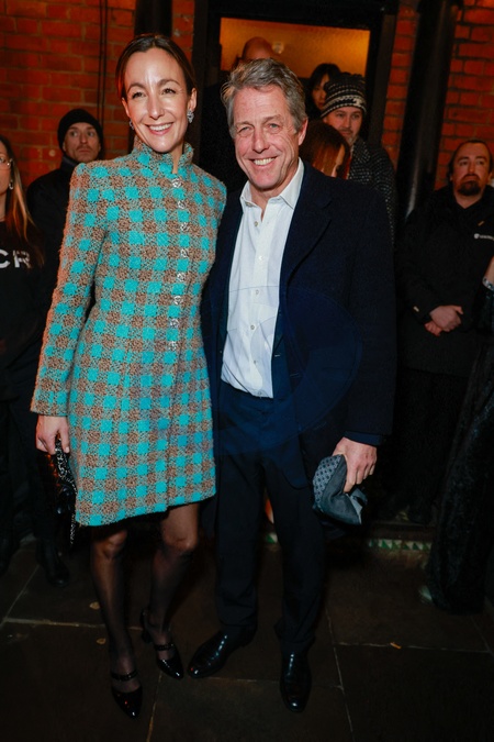 Hugh Grant et sa femme Anna Elisabet Eberstein - Front row du défilé Chanel collection 2023/24 des Métiers d'art à Manchester, Royaume Uni, le 7 décembre 2023. Chanel organise son prochain défilé Métiers d'Art en décembre à Manchester, dernière étape de la tournée annuelle de cette collection unique, qui a déjà eu lieu à Tokyo, Strasbourg, Rome, New York et Shanghai. La maison n'a pas révélé le lieu exact du défilé à Manchester, dans le nord de l'Angleterre qui a bâti sa richesse sur l'industrie du coton et du textile au XIXe siècle. La maison de couture parisienne dévoile sa collection 2023/24 des Métiers d'art. Il s'agit du premier défilé de la marque en Angleterre depuis la collection "Paris-Londres" de Karl Lagerfeld, inspirée par Amy Winehouse, en décembre 2009. © Olivier Borde/Bestimage Celebs attend the CHANEL Metiers D'Art Show in Manchester, UK, on December 07, 2023.