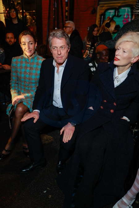 Hugh Grant, sa femme Anna Elisabet Eberstein et Tilda Swinton - Front row du défilé Chanel collection 2023/24 des Métiers d'art à Manchester, Royaume Uni, le 7 décembre 2023. Chanel organise son prochain défilé Métiers d'Art en décembre à Manchester, dernière étape de la tournée annuelle de cette collection unique, qui a déjà eu lieu à Tokyo, Strasbourg, Rome, New York et Shanghai. La maison n'a pas révélé le lieu exact du défilé à Manchester, dans le nord de l'Angleterre qui a bâti sa richesse sur l'industrie du coton et du textile au XIXe siècle. La maison de couture parisienne dévoile sa collection 2023/24 des Métiers d'art. Il s'agit du premier défilé de la marque en Angleterre depuis la collection "Paris-Londres" de Karl Lagerfeld, inspirée par Amy Winehouse, en décembre 2009. © Olivier Borde/Bestimage Celebs attend the CHANEL Metiers D'Art Show in Manchester, UK, on December 07, 2023.