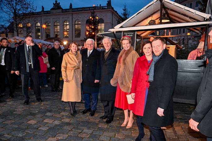 krol Philippe krolowa Mathilde Frank-Walter Steinmeier zona Elke na Jarmarku Bozenarodzeniowym w Dreznie