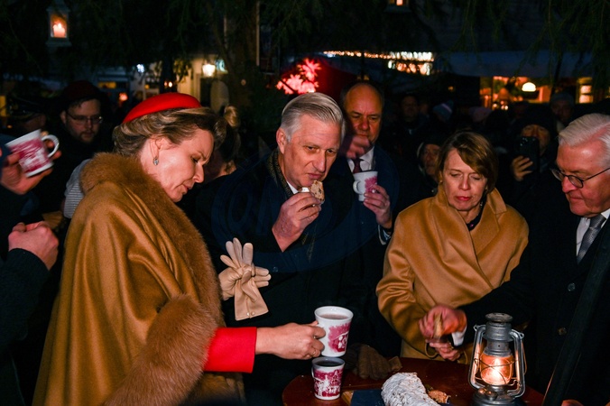 Le roi Philippe et la reine Mathilde de Belgique, accompagnés du président Frank-Walter Steinmeier et de sa femme Elke, en visite au Marché de Noël à Dresden, à l'occasion de leur voyage officiel en Allemagne