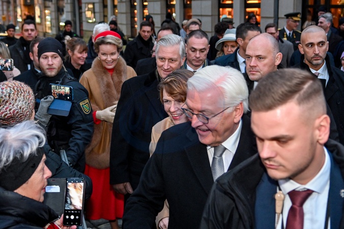 Le roi Philippe et la reine Mathilde de Belgique, accompagnés du président Frank-Walter Steinmeier et de sa femme Elke, en visite au Marché de Noël à Dresden, à l'occasion de leur voyage officiel en Allemagne
