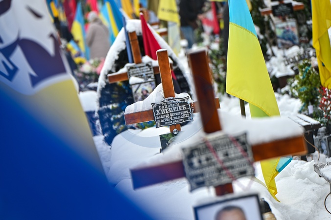 LVIV, UKRAINE - DECEMBER 6, 2023 - Graves are pictured in winter during a ceremony in remembrance of the heroes who perished in the fight for a free and independent Ukraine at the Lychakiv Cemetery on the Day of the Armed Forces of Ukraine, Lviv, western Ukraine., Credit:Anastasia Smolienko / Avalon