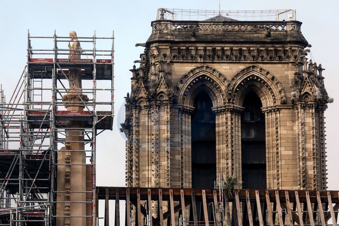 Illustration lors de la visite du président français sur le chantier de la Cathédrale Notre-Dame de Paris, France, le 8 décembre 2023. © Stéphane Lemouton/Bestimage Illustration during the French president's visit to the reconstruction site of Notre-Dame Cathedral in Paris, France,on December 8, 2023.