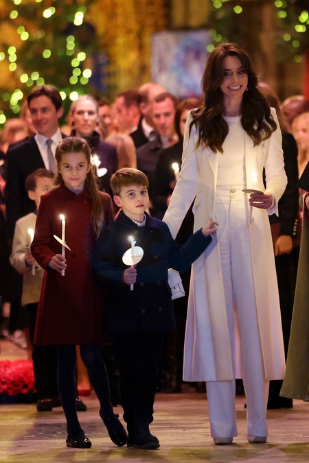 Princess Charlotte of Wales, Prince Louis of Wales and Catherine, Princess of Wales attend The "Together At Christmas" Carol Service at Westminster Abbey on December 08, 2023 in London, England. Spearheaded by The Princess of Wales, and supported by The Royal Foundation, the service is a moment to bring people together at Christmas time and recognise those who have gone above and beyond to help others throughout the year., Credit:Chris Jackson / Avalon