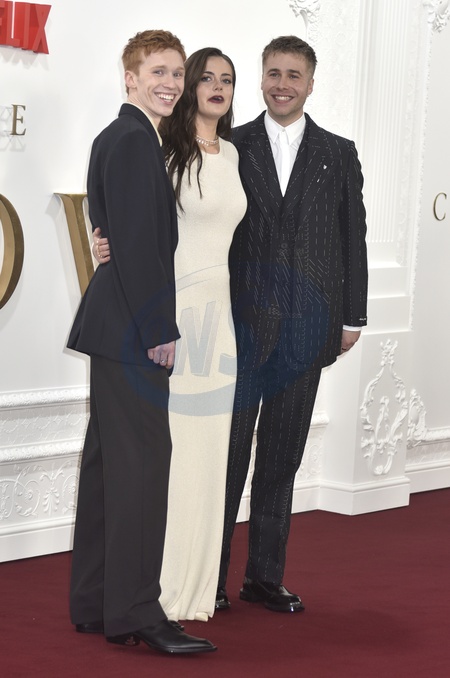 (L-R) Luther Ford, Meg Bellamy and Ed McVey attend the Finale Celebration for "The Crown" Season 6 at Southbank Centre, The Royal Festival Hall, Belvedere Road, Lambeth, London SE1 8XX on Tuesday 5 December 2023., Credit:Sue Andrews / Avalon