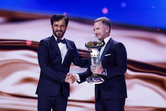 HORNER Christian, Red Bull Racing, FIA Formula One World Championship - Champion, BEN SULAYEM Mohamed, FIA President, - Cérémonie de remise des prix FIA 2023 au Centre des congrès de Bakou, le 8 décembre 2023. The 2023 FIA Prize Giving Ceremony in Baky on December 8, 2023 at Baku Convention Center in Baku, Azerbaijan
