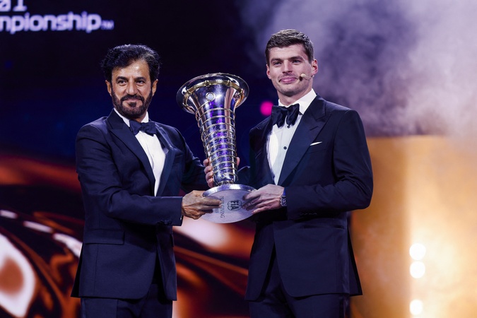 BEN SULAYEM Mohamed, FIA President, VERSTAPPEN, FIA Formula One World Championship - Champion, - Cérémonie de remise des prix FIA 2023 au Centre des congrès de Bakou, le 8 décembre 2023. The 2023 FIA Prize Giving Ceremony in Baky on December 8, 2023 at Baku Convention Center in Baku, Azerbaijan