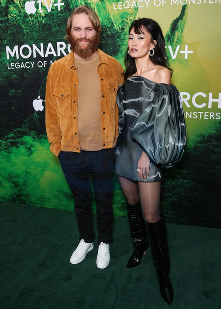 WEST HOLLYWOOD, LOS ANGELES, CALIFORNIA, USA - DECEMBER 08: Wyatt Russell and Mari Yamamoto arrive at the Los Angeles Photo Call Of Apple TV+'s 'Monarch: Legacy Of Monsters' Season 1 held at The London West Hollywood at Beverly Hills on December 8, 2023 in West Hollywood, Los Angeles, California, United States., Credit:Xavier Collin / Avalon
