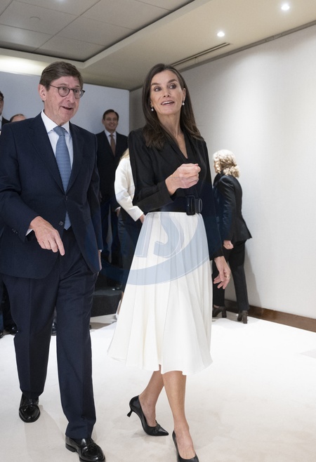 La reine Letizia d'Espagne, en tant que présidente d'honneur de FAD Youth, préside la réunion de son conseil d'administration à Madrid, le 12 décembre 2023. Queen Letizia attends a meeting with members of FAD Foundation against drugs at the Caixabank building in Madrid. December 12th, 2023.